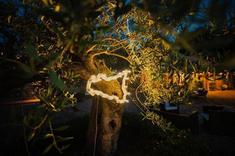L’allestimento è stato curato nei minimi dettagli da Marta Decente. Il tavolo imperiale era decorato con runner di limoni, arance e verde fogliame, intervallati da specchi e cristalleria ambrata. Candele e tronchi hanno arricchito l’ambiente, creando un’atmosfera magica. I gadget segnaposto, dei tamburelli decorati con pizzo e passamaneria siciliana, sono stati personalizzati per ogni ospite, aggiungendo un tocco unico e ricercato.