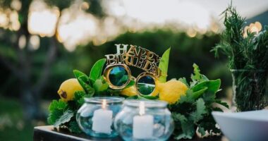 L’angolo torta è stato realizzato con grande cura, con candele e vasi appesi agli alberi che rendevano l’ambiente suggestivo. La torta di compleanno, decorata con fiori freschi e decori siciliani, è stata la protagonista della serata.