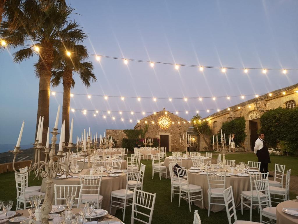 Dopo aver detto il fatidico “sì”, gli sposi hanno voluto festeggiare insieme a parenti e amici presso Baglio Strafalcello, una località che propone lo scenario incantato di un’antica costruzione rurale situata in una tranquilla zona di campagna a Castellammare del Golfo.