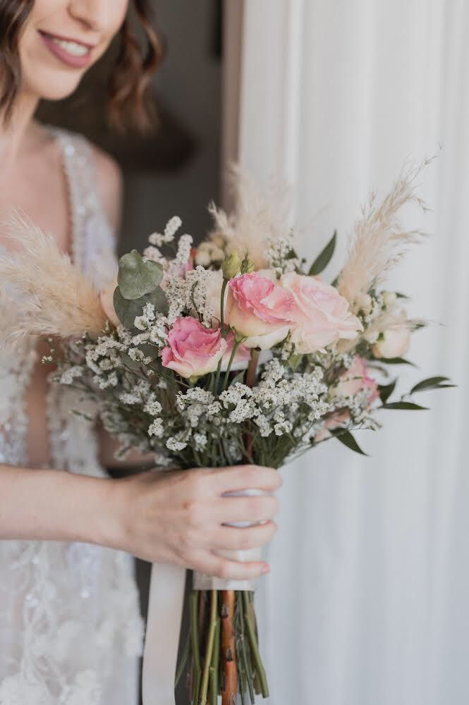 Le nozze si sono svolte presso il Santuario Madonna della Milicia, nella località di Altavilla, in provincia di Palermo, dove all’interno bellissime composizioni floreali tra cui: anthurium rosate e Delia bianca abbinate a straordinarie foglie di pampas che facevano da cornice.