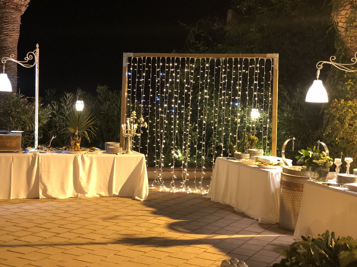 Di grande effetto emozionale: la confettata, l’Angolo Photo Booth e l’Angolo riservato al taglio della torta con una magica cascata di luci calde.