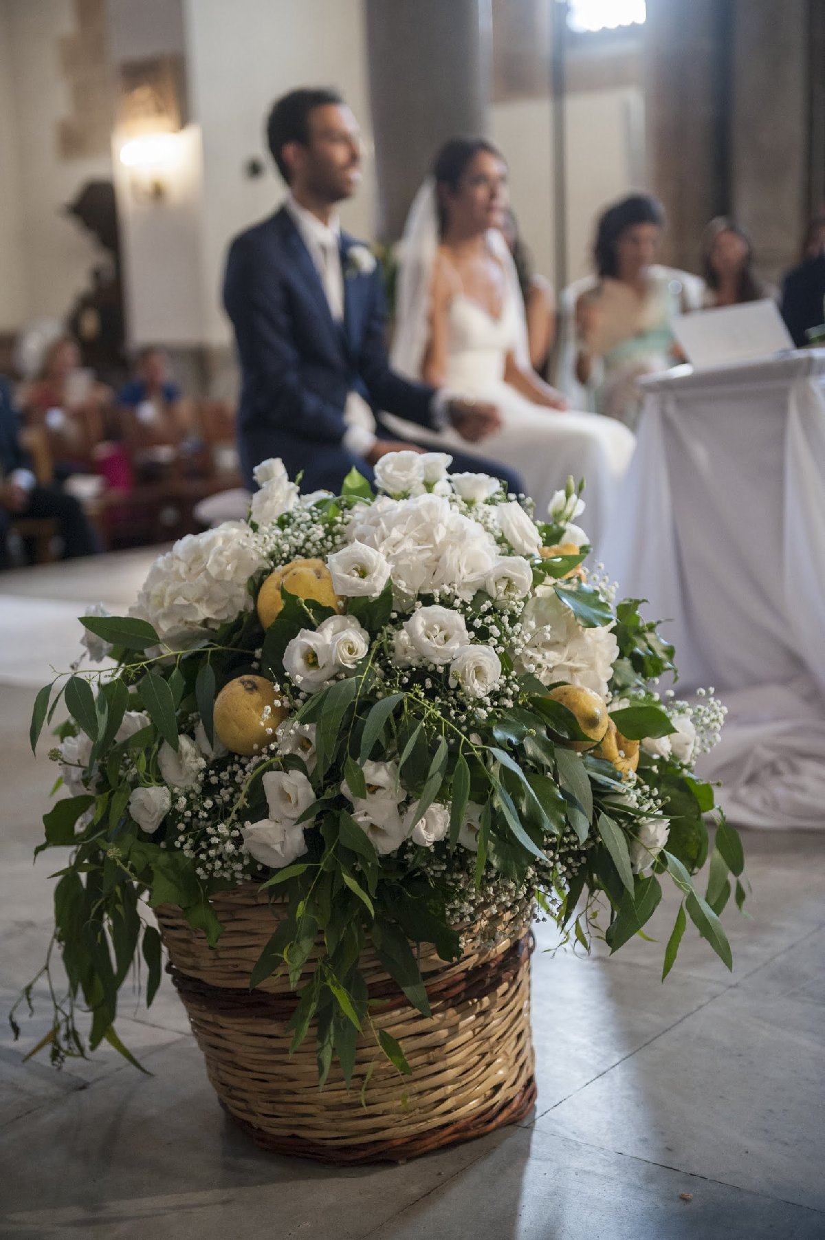 Nuvole di ortensie bianche al profumo di limoni, arredano con classe e semplicità la Chiesa di Santa Maria della Catena e il Castello di San Nicola L’Arena. Dopo la Cerimonia Nuziale, gli sposi hanno deliziato gli ospiti con un simpatico aperitivo davanti la Chiesa.